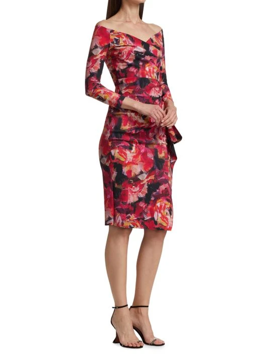 ONLY AT SAKS. A cocktail dress with demure sleeves, a tailored fit, and a ruched wrap-effect skirt.