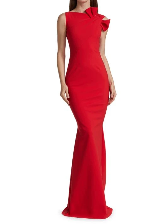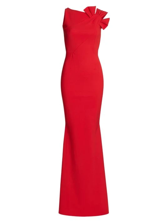 ONLY AT SAKS. This silhouette-flattering jersey gown is styled with an asymmetric and a bow at the shoulder.