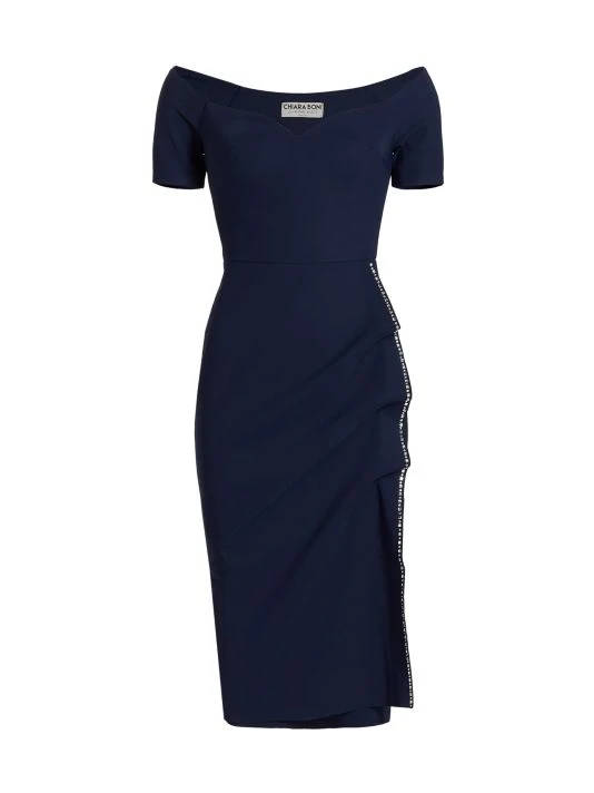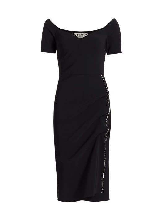 ONLY AT SAKS. A row of glittering crystals add shine to this stretch jersey midi dress, topped with a flattering sweetheart neckline and wrapped shaping.