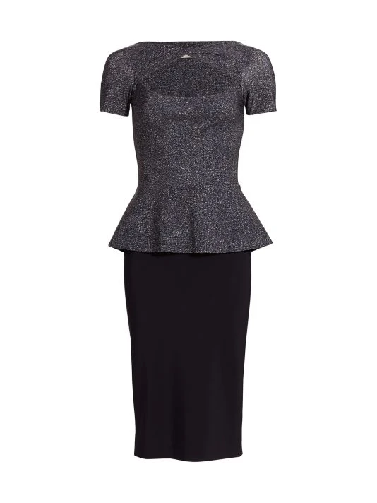 A playful peplum design and cutout neckline lend a sculptural effect to this cocktail dress.