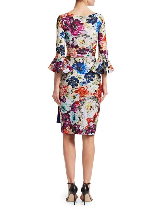 - Three-quarter sleeves with ruffle cuffs