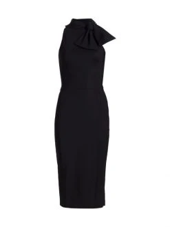 ONLY AT SAKS. This chic midi-dress is fashioned with a statement self-tie at the high neck, slimming the figure in a body-con silhouette.