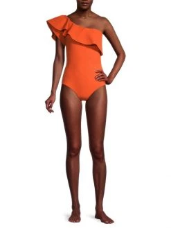 Chiara Boni La Petite Robe Eli Ruffle One-Piece Swimsuit Tangerine